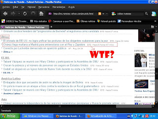 WTF en Yahoo Noticias 11 septiembre, 2009 Ser Curioso Humor, Internet Haga click en la imagen para agrandarla y ver un gran error en Yahoo Noticias. Yo no sé qué becario estará dominando esto, pero la verdad es que se le cuelan bastantes.